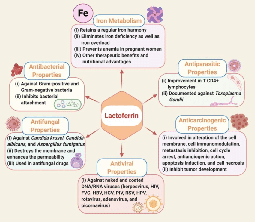 Lactoferrin's antimicrobial activity, a molecule contained in colostrum and milk, is largely due to its ability to bind free iron, depriving microbes of this essential nutrient. Lactoferrin's affinity for iron is 250-300 times higher than transferrin, the main iron transport molecule in the human body. In fact, this is a core protective mechanism for breastfeeding infants against pathogens. Taking lactoferrin (or Colostrum) is also a potent tool in lowering bacterial loads in the gut in cases of SIBO or dysbiosis.
